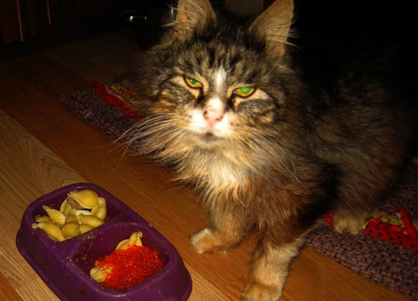 | Ranger написал: я вот дал котам красной икры, видел бы ты их морды! Потом покажу.Нашёл одну фотку ----------
