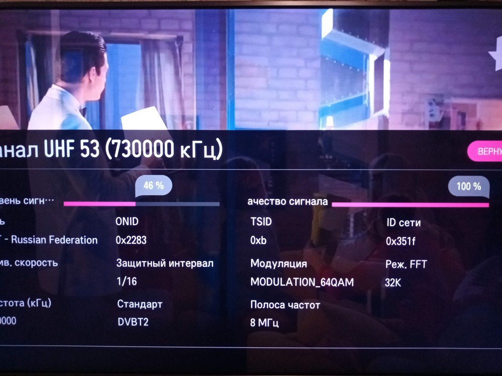 | kibalchish написал: скрины хоть скинь, или ссылки, на популярные бренды телеков. В настройках обычно , "уровень сигнала" или "тест сигнала " , на BBK у меня кнопочка "info" её 2 раза нужно нажать , в LG спрятано хорошо правда , без гугла сам не нашел . Один , Два . Еще очень полезное чтиво есть , инструкцией зовется . В основном все аналогично этому . Ни кто от вас эту опцию намеренно не прячет . |