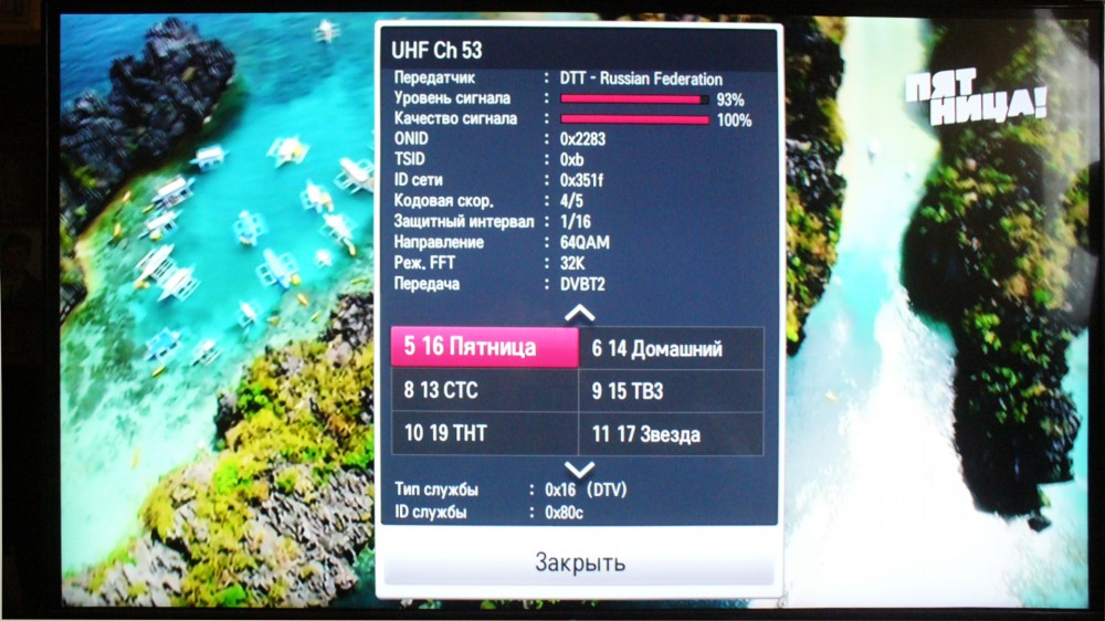 | Себастьян Перейро, спасибо за информацию. У меня инфо надо удержать 5 сек и появится нужная информация. На данный момент работают все 20 каналов, хотя 1 мультиплекс периодически глючит. особенно Россия 1. Уровень сигнала 1 мультиплекс -100,а качество от 30 до 70. буду смотреть в динамике.