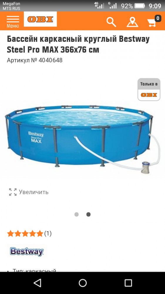 | Брали в Оби в июне,8500 руб, объем почти 6500 т.В комплекте уже есть фильтр.Установка быстрая,заполнялся пол дня,купили "таблетку"там же,для того чтобы хлорку туда положить.Вода не цветет и тент ,чтобы покрывать