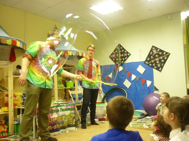 Заказывала на детский праздник в кафе.Детям очень понравилось,каждый ребёнок постоял внутри огромного мыльного пузыря.Минимальная программа 25 мин(этого вполне достаточно)= 5000р. Звоните,заказываете и они приезжают. За дорогу уже не платите,всё входит в стоимость. 89524600088. Можете посмотреть в Контакте....Александр Лазарев. | |
