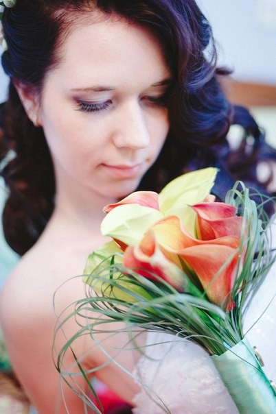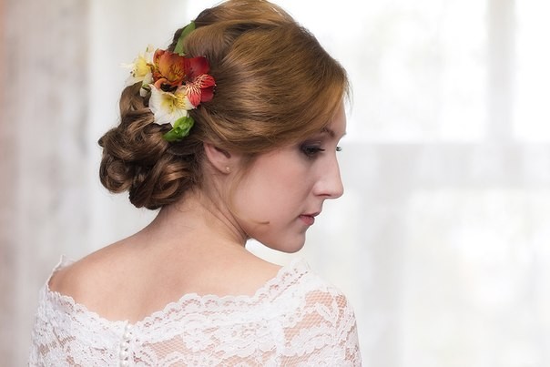 | на последней фотографии очень красиво линии локонов сочетаются с линией цветов!