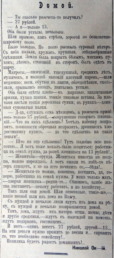 Относительно зарплат могу добавить еще одну зарисовку Н.С. Власова-Окского из газеты "Судоходец" за 1913 год (№ 860)...