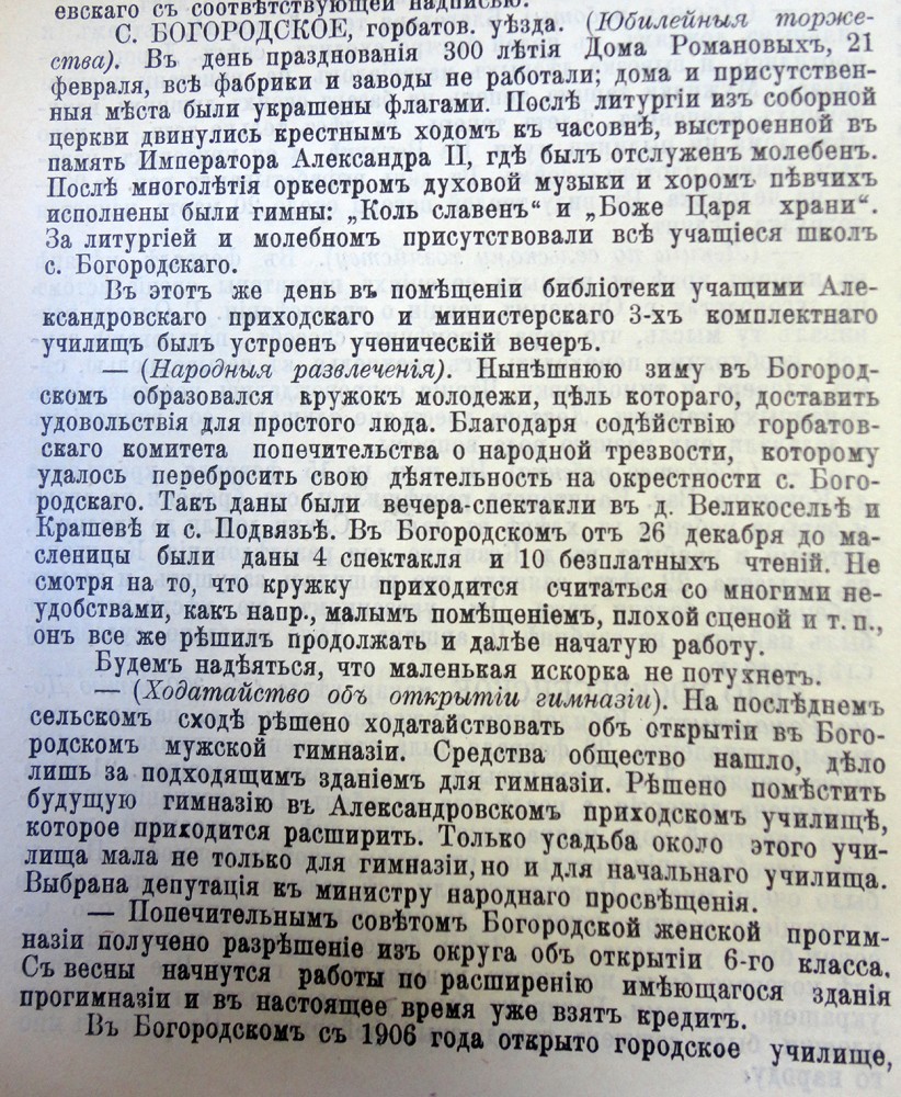 Село Богородское. 1913. Февраль, Общественный корреспондент, Нижегородская земская газета. 1913. № 11. С. 327–328