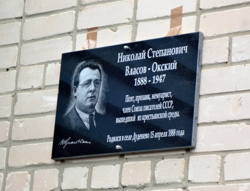 Николай Степанович Власов-Окский (литературный псевдоним, настоящая фамилия – Власов), поэт, прозаик, мемуарист, родился в селе Дуденеве Горбатовского уезда Нижегородской губернии 15 (27) апреля 1888 года в крестьянской семье. Его отец – Степан Максимович Власов, потомственный землепашец, мать – Таисия Анфимовна Власова (урожденная Дряхлова), «до глубокой старости хлеборобка»[2]. Кроме сына в семье было еще две дочери: старшая – Анна и младшая – Александра; восемь детей, родившихся у Власовых за прошедшие между Анной и Николаем пятнадцать лет, умерли в младенчестве от слабости, как указано в метрических книгах Покровской церкви села Дуденева[3]. Большая разница в возрасте позволила старшей сестре стать при крещении брата его восприемницей[4].