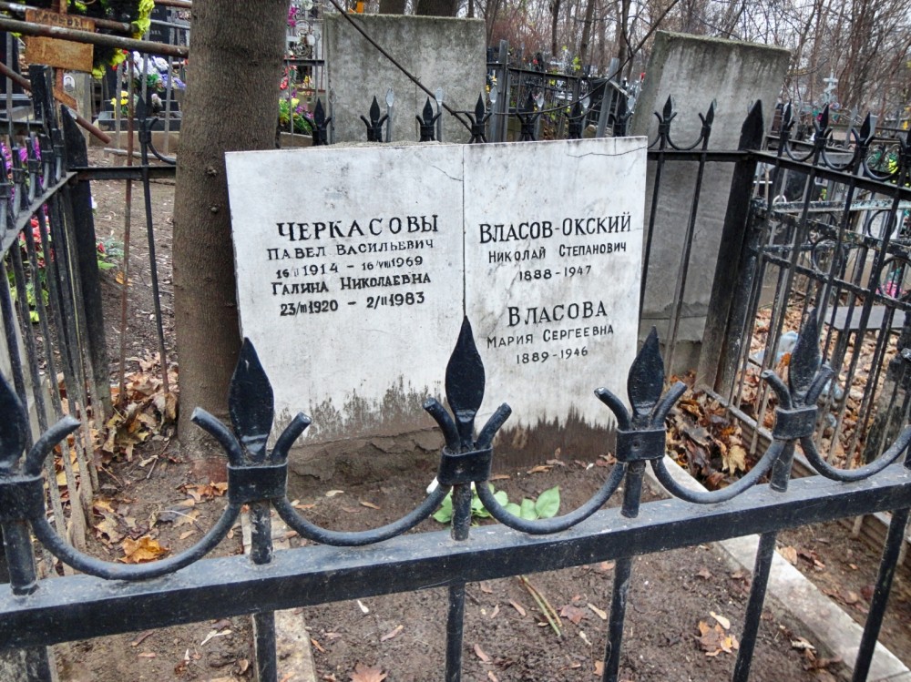 Могила Николая Степановича Власова-Окского. Рядом покоятся жена поэта, Мария Сергеевна Власова, дочь, Галина Николаевна (Власова) Черкасова, и ее муж Павел Васильевич Черкасов.