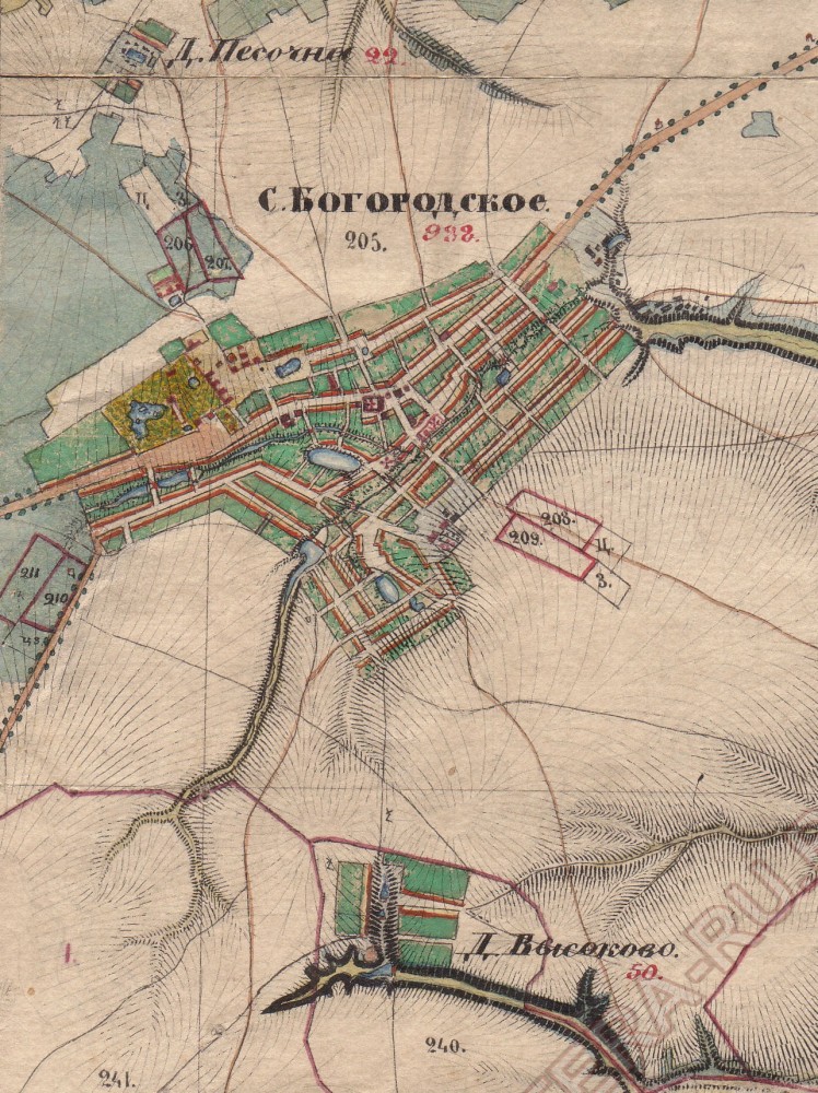 вот прикрепил схему села Богородского 1850 г. На тот год в селе было 988 домов
