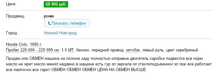 Часто попадаются смешные, глупые объявления. Как-то продавали автомобильный регистрационный номер за 100 т.р.