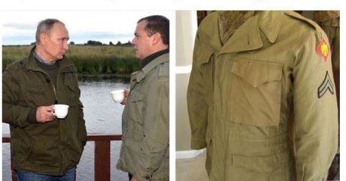 | Главклоуны поехали на рыбалку!У медведева полевая американская армейская куртка М-65, известная ещё со Вьетнама и со следами срезанных шевронов. А их срезают только у тех, кто сдался в плен.