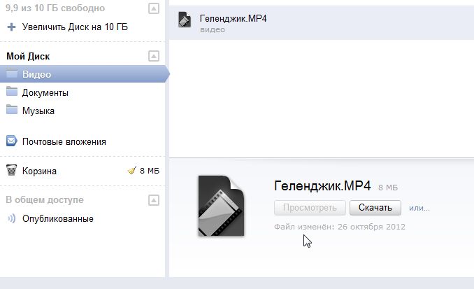Закинул видео файл на Яндекс.Диск его можно только скачать, хотя муз. файлы воспроизводятся. Кстати, как там корзину почистить чего то не нашел? |