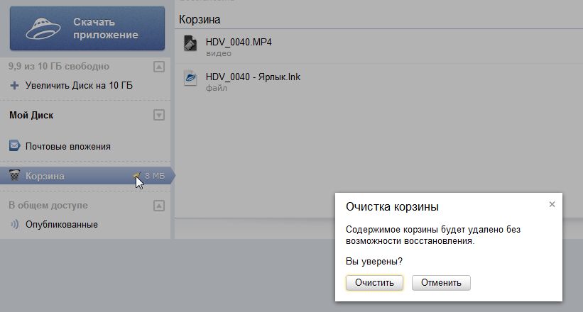 Чтобы очистить корзину Яндекс.Диск надо на метёлку нажать |