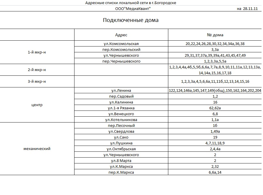 Информация от ООО"МедиаКвант"!Подключенные дома на данный момент! |