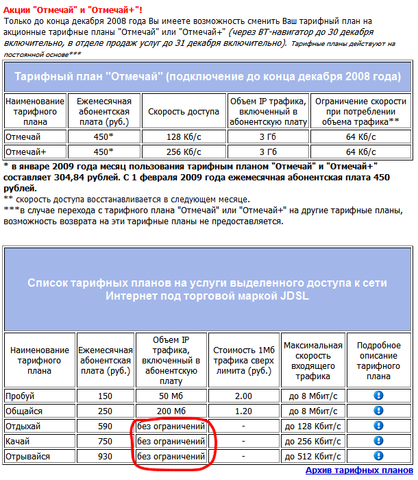 | По поводу "Отмечай +" по такому тарифному плану как мне сказали, покдлючали у нас только в ноябре, и действует этот тариф в БГ по её словам до 31 чисал нынешнего месяца.............А вот тариф "Отмечай" действует, только что взял бланк для смены тарифа, но у меня удивило следующее, по инфе остальных напсано что у тарифа "Отмечай" трафик входящий планка стоит до 3 гигов и якобы скорость падает до мопеда, тобиж до 32, а в бланочке на этом тарифе "без ограничений", я переспросил 2 раза, но снова и снова услышал "без ограничений", вообщем пока не знаю...может просто работнЕГИ не осведомлены....