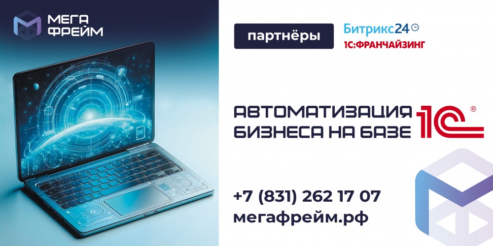 Продажа программных продуктов 1С; Установка 1С; Внедрение и сопровождение 1С; Поддержка программ «1С»; Поддержка программ «1С - Битрикс24» по всей России; Ищете надежное и эффективное сопровождение для программы 1С? Наша компания предлагает профессиональные услуги по обслуживанию и поддержке 1С, учитывая все особенности вашего бизнеса! Контакты для связи: Офис:+7 (831) 262-17-07 Наш сайт: мегафрейм.рф/ Наш Telegram-канал: t.me/megaframe52 Мы на карте: yandex.ru/maps/org/m... |