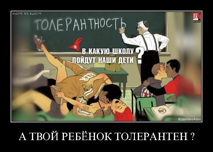 Что до моего "гомолюбия" - я уже писал в той самой теме, что чужая личная жизнь меня не касается, и людей я оцениваю не по сексуальной ориентации или национальности. И гетеросексуальные исконные россиянцы бывают редкостными пидарасами, и "голубые" евреи могут быть вполне нормальными людьми. О причинах гомофобии я уже писал, повторяться не буду. "Креативы" и прочие "демотиваторы" рассматривай сам, мне все эти быдлокартинки до одного места. А о своем ребенке я сам позабочусь, он тебя должен волновать меньше всего, ага. Думаю, вопрос исчерпан, надоело одно и то же переливать... | |