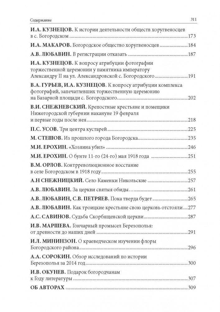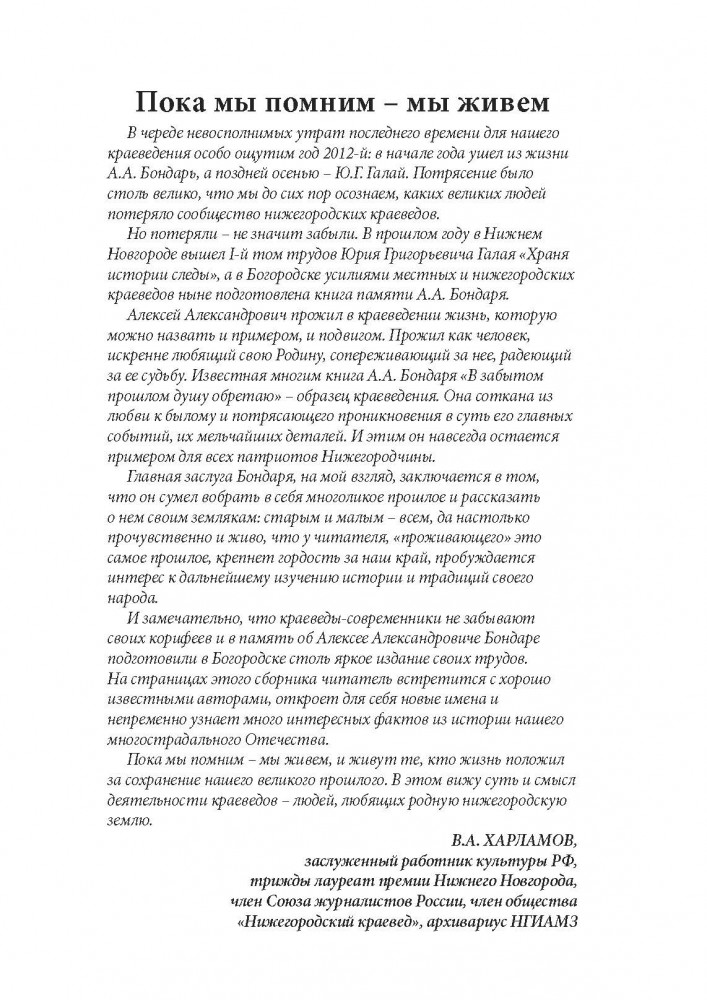 | Подготовлен и отпечатан немногочисленными экземплярами очередной выпуск альманаха "Краевед Березополья", посвящённый памяти замечательного краеведа земли Богородской Алексея Александровича Бондаря (Без прошлого нет настоящего: сборник историко-краеведческих трудов, посвященных памяти А.А. Бондаря (1952 – 2012) : [Краевед Березополья] ; [Под ред. А.В. Любавина, С.В. Петряева, А.А. Сорокина]. – Богородск [Нижегор. обл.] : [Печатный дом "Вариант"], 2015.