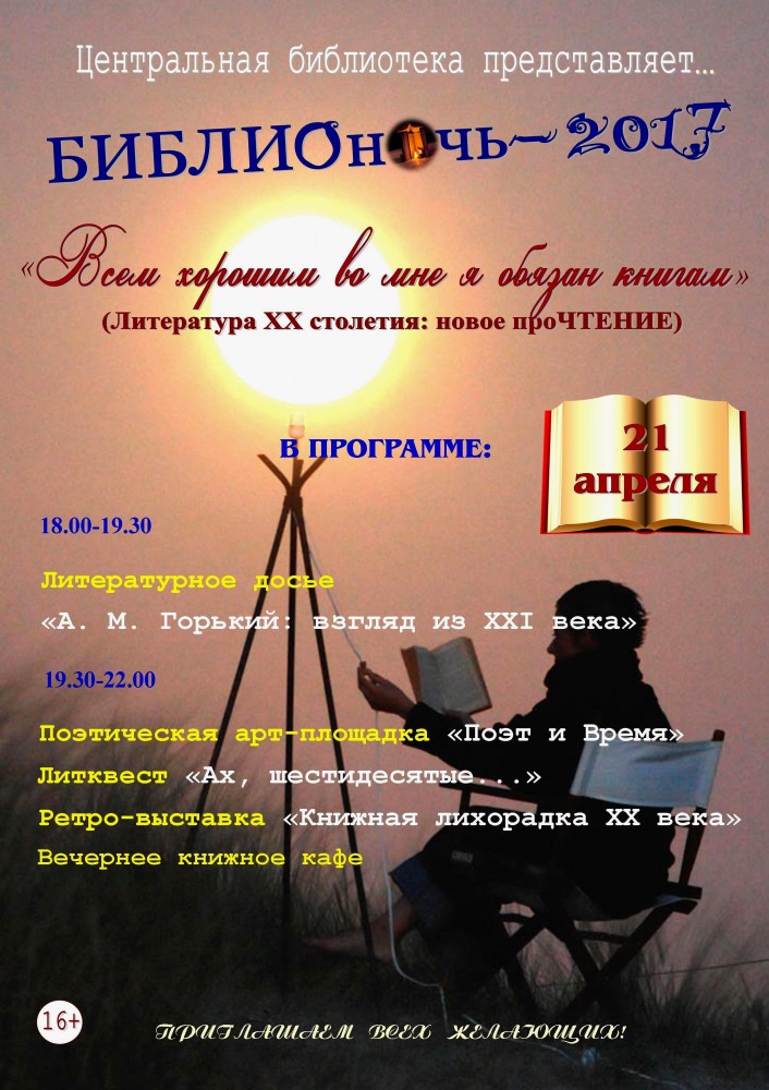 | 21 апреля 2017-го в Центральной библиотеке БОГОРОДСКА НИЖЕГОРОДСКОЙ (ул. Ленина, 202) пройдет традиционная ежегодная библионочь.