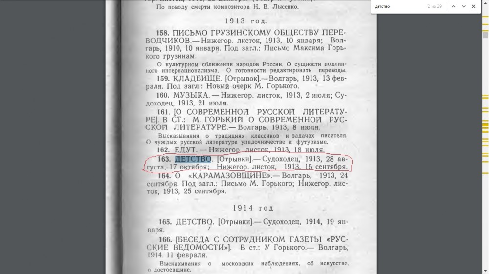 Viktor IX написал: наменитый нижегородец публиковал в "Судоходце" (замечу – впервые) главы из повести "Детство" Детство Впервые напечатано в газете "Русское слово", 1913 - номер 196 от 25 августа; номер 208 от 8 сентября; номер 213 от 14 сентября; номер 219 от 22 сентября; номер 224 от 29 сентября; номер 230 от 6 октября; номер 236 от 13 октября; номер 260 от 10 ноября; номер 266 от 17 ноября; номер 271 от 24 ноября; номер 277 от 1 декабря; номер 283 от 8 декабря; номер 289 от 15 декабря; номер 295 от 22 декабря; номер 299 от 29 декабря; 1914 - номер 4 от 5 января; номер 12 от 16 января; номер 18 от 23 января; номер 24 от 30 января. Текст ссылки... Viktor IX написал: в "Судоходце" На три дня позже? (см.скрин) | |