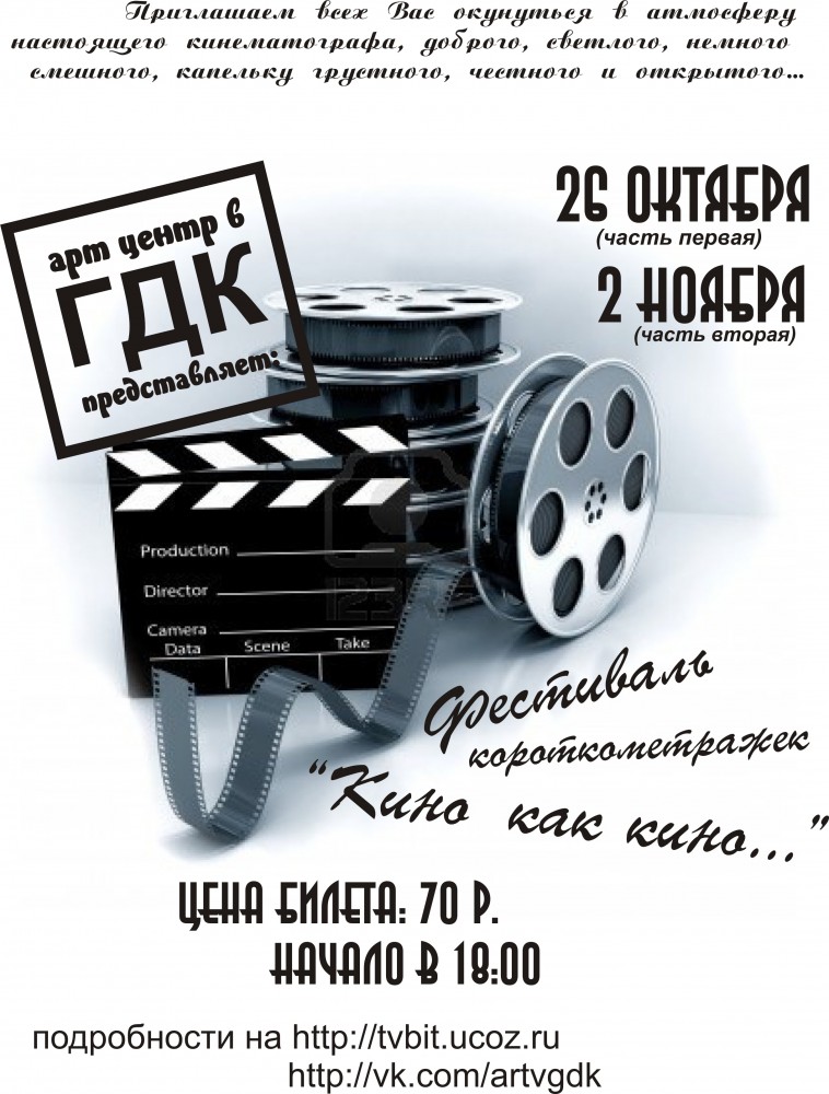 Итак, 12 октября отгремел рок концерт, который наверняка оставил много незабываемых впечатлений у вас, наших постоянных слушателей! Но каждый праздник когда-нибудь заканчивается. Вот и 12 октября осталось уже на 2 недели в прошлом... Мы не согласны с таким положением вещей и предлагаем вашему вниманию следующее мероприятие - Фестиваль короткометражек "Кино как кино..."!