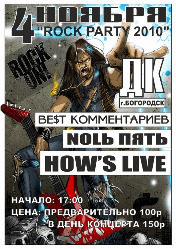 4 ноября 2010 года в малом зале ДК города Богородска в лучших традициях рок тусовок города состоится осенний концерт «ROCK PARTY vol. 2010»
