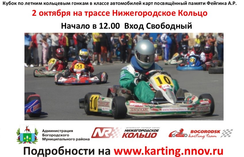 ООО АСК «Нижегородское кольцо» и Администрация Богородского муниципального района проводят открытый Кубок по летним кольцевым гонкам в классе автомобилей карт.