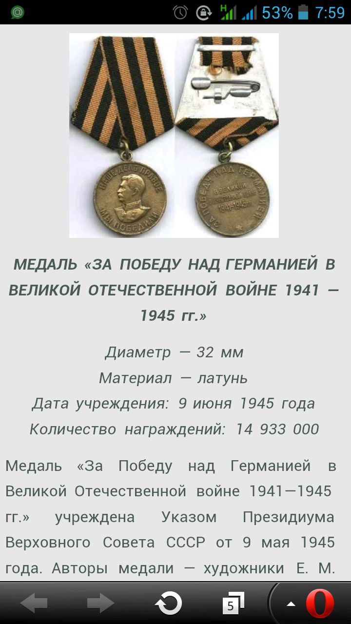 5 февраля 1951 г. медаль "3а победу над