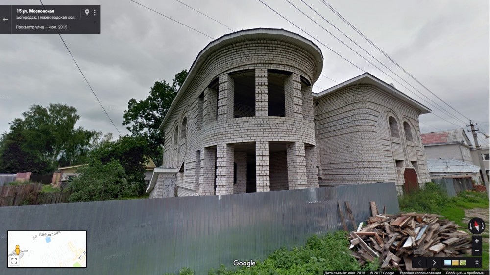 | Вот такой домик. Новострой. Но интересно, кто архитектор, и кто это строил. К сожалению сейчас мало таких домов, в основном коробочки с двускатной крышей, либо цыганские дворцы. А тут со вкусом, необычно. Жаль на гугл-панорамах не видно всей красоты.