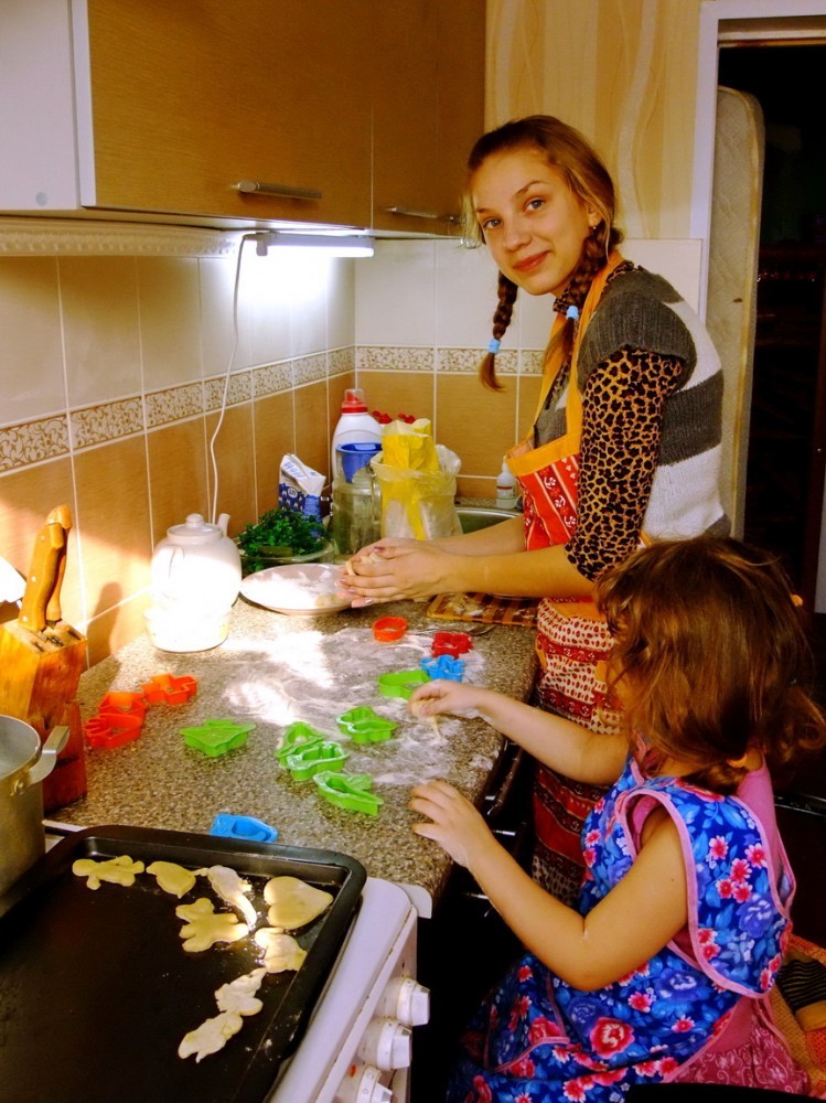 а мне муж подарил набор формочек для печенья и протвень с антипригарным покрытием. вот только что дочка с племяшкой помогали печь печенье