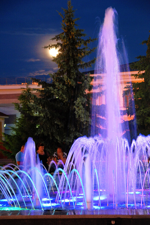 Польстим луне и фотографу - вышло очень красиво. В реальности фонтан выглядит беднее. Кто-то назвал его консервной банкой из-под кильки, и в этом есть доля истины