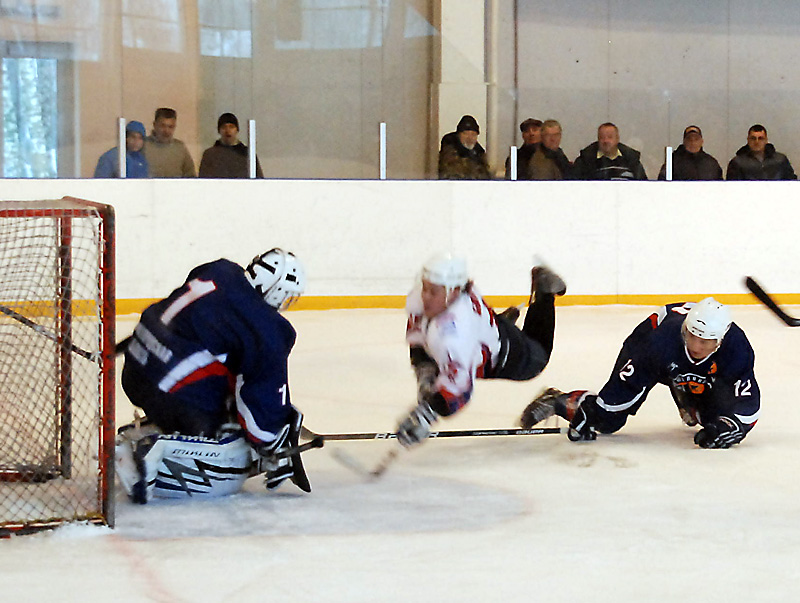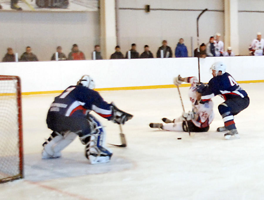 Из положения сидя, первая заброшенная Спартаком шайба.