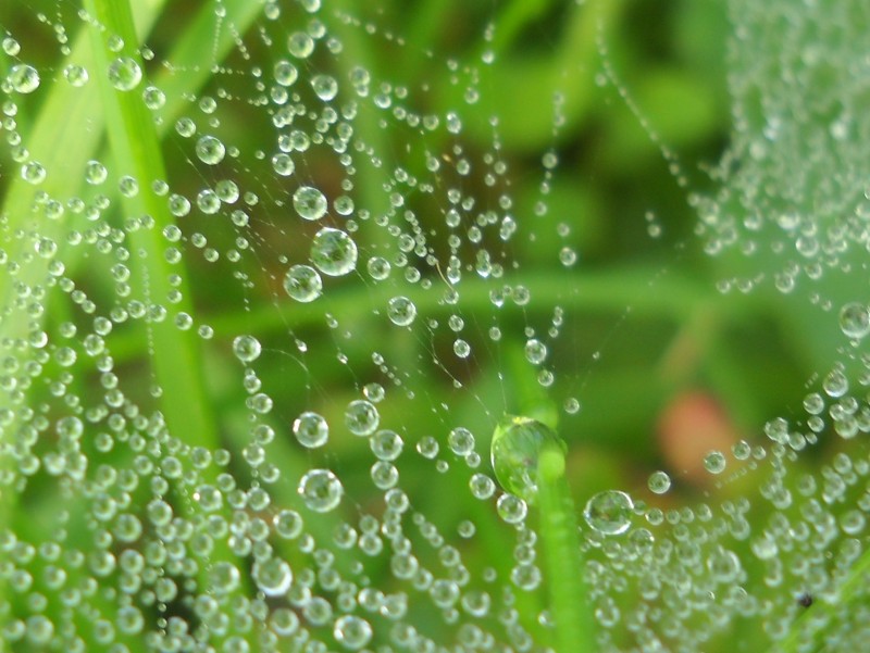 Четыре года назад тоже за росой и паутинами "охотилась"