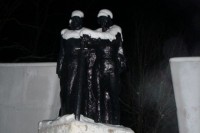 Памятник в новом парке под снегом