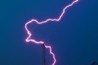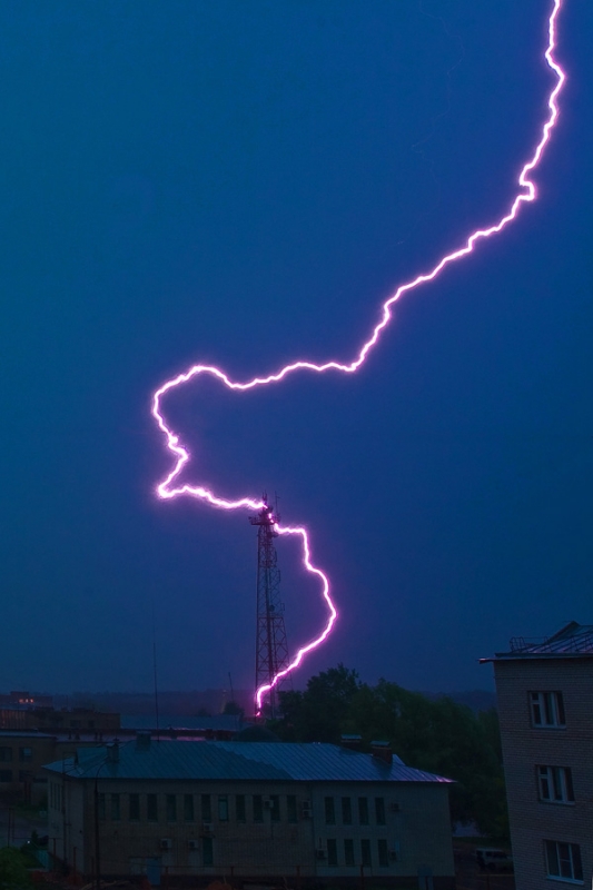 Скорее всего молния сзади башни была,просто так кажется на фото.