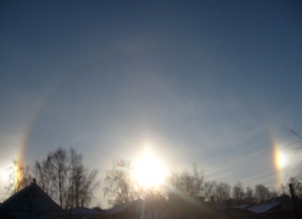 Вот такие Гало и предупреждают о наступлении сильных морозов. В Сибири - это частое явление. Если увидел - жди на следующий день мороза. Точно так же как и круги вокруг Луны. Блин, дождались ЗИМЫ.