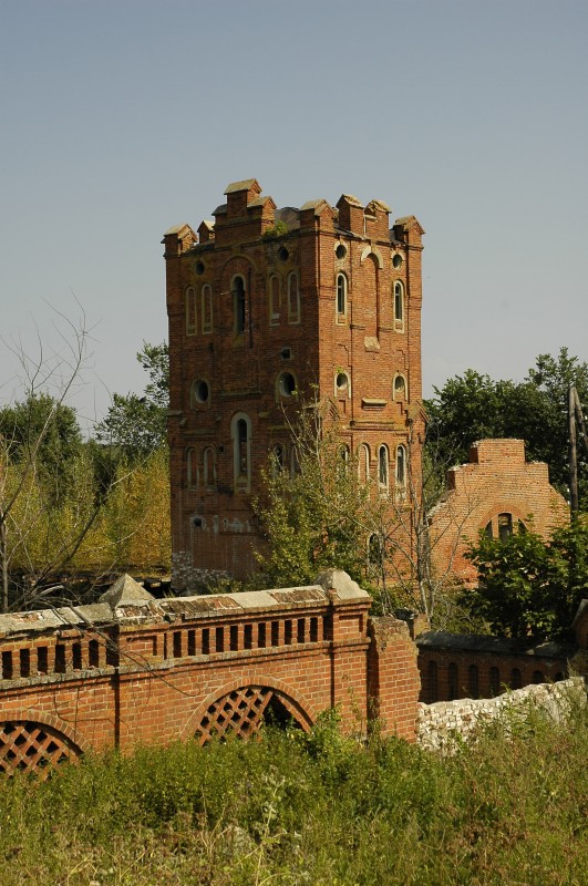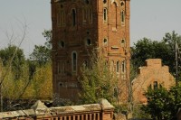 Это водонапорная башня, видно ее с дороги, думаю при желании добраться до нее труда не составит.., в детстве часто забирались на самую крышу, внутри в стену вбиты металические скобы, собственно это и есть лестница, девченки не решались, а нам за радость, целое приключение))