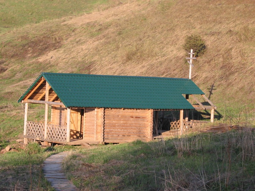 Спуститься можно до неё по сколоченной деревянной лесенке. Там есть труба с источником, где можно набрать воды (святой) и две купальни (одна женская для "сестёр", другая мужская для "братии").
