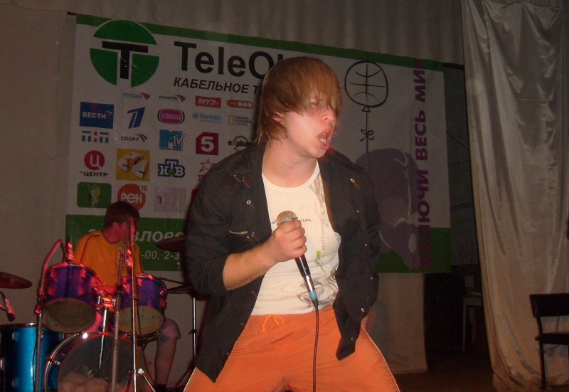 Солист как бы хочет нам сказать, что его микрофон непосредственного подключен к его МПХ.