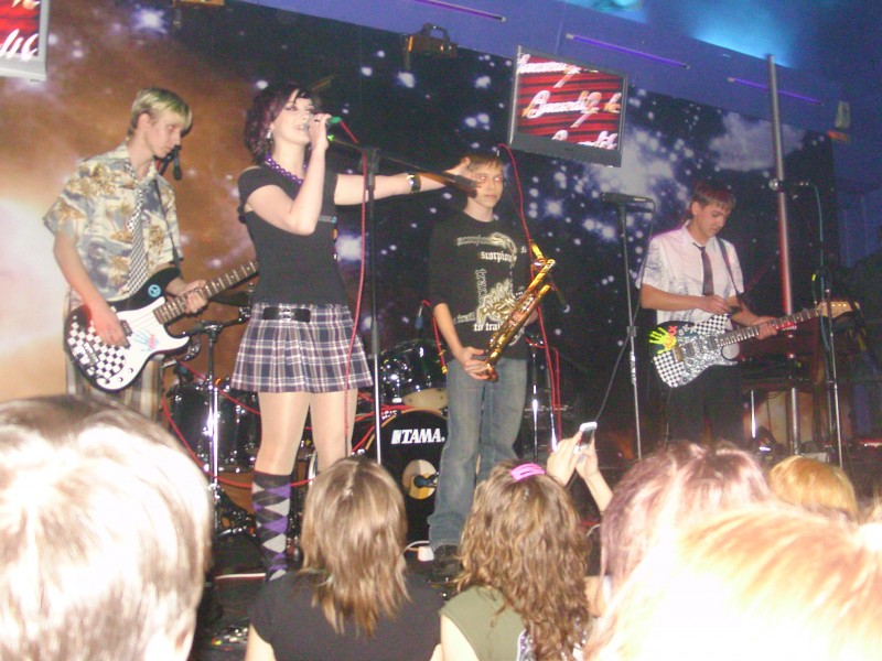 Эта милая девочка - вокалистка группы "соускрим", а играют с ней ребята из группы "Аякс".