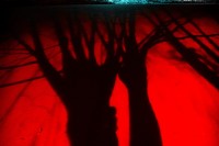 Чудовище с кровавым отсветом тянет свои лапы к мирно спящим домам...