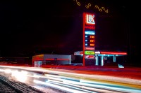 О лукойловских заправках у меня хороших воспоминаний не осталось. Это на фото Дениса она красочная, потому что профи. А здесь эти заправки были с самыми страшными продавцами, причём, несмотря на российских хозяев, ещё и не знающими русского языка, поесть в этих ларьках можно было лишь сникерсами и печеньем, кофе слабенький, а масла и прочая автоснедь дорогая и в убогом ассортименте. Сейчас их бензоларьки выкупил Olerex, сменил продавцов на приветливых девчонок, причём, нередко многоязычных, расширил выбор товаров и наладил фастфуд.