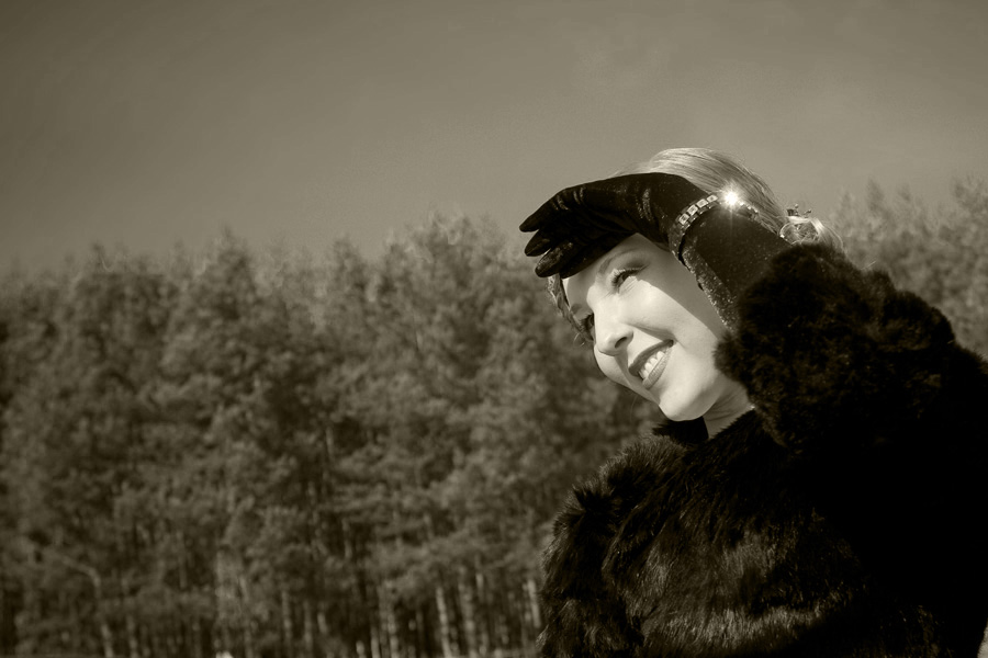 Немного взгляду начинающего(позвольте судить без наворотов---просто:нравиться или не нравиться) не нравиться оранжевая брошь на волосах и...губы немножко не естественны по цвету.А совпадение с брошью по цвету выглядит ненатурально.Моё мнение---надо "убрать" брошь...