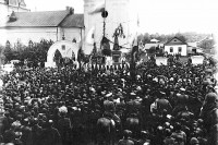 8 июля 1912 года. Село Богородское. Освящение памятника (бюста на постаменте) Александру II у церкви Успения Божией Матери. Снимок отпечатан с негатива богородского фотографа Дмитрия Матвеевича Лапкина и реставрирован.