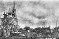 Согласен с Viktor IX этот Храм находился почти точно напротив сегодняшнего Престижа. Первый дом справа, это вероятно бывшая до недавнего времени мебельная мастерская. И похоже, что на переднем плане фотографии, как раз изображено строительство моста через реку Рязанку. Кстати, а каким годом датированно фото?