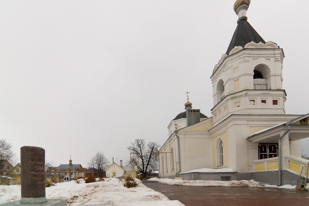 Памятник музыкальному критику А.Д. Улыбышеву, уроженцу Лукина. Из-за ненастья так и не смог его тогда сфотографировать, о чем жалею. Памятник был убран с этого места по требованию монастырского руководства - не положено, дескать. Где он сейчас, - не знаю. В начале же 1998 года монастырь еще только-только обустраивался.