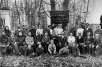 Справа, скорее всего, стена школы № 1, находившейся рядом с кожтехникумом. За спинами виден старый парк.
