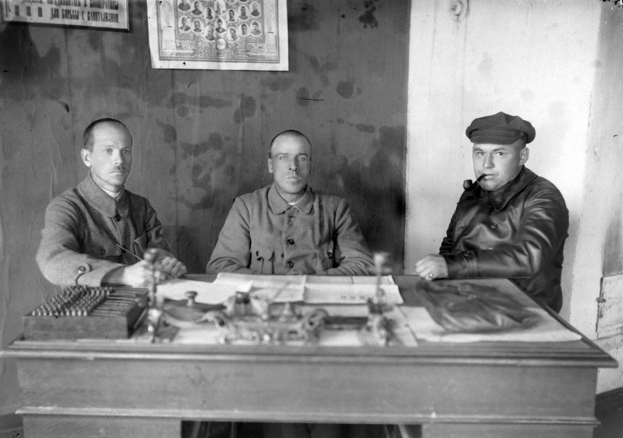 Действительно, больше напоминает "чрезвычайную тройку", на столе маузера не хватает, постеснялись, наверное.. А счёты - это чтоб раскрытых врагов народа, оборотней и оппортунистов удобнее было сводить в таблицы для представления в Политбюро..