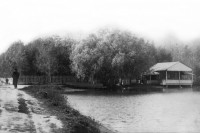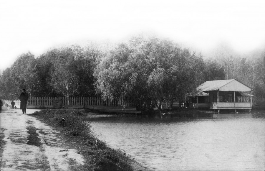 Фото рубежа ХХ века, нынешний старый парк, который еще назывался "новым садом". На берегу располагалось летнее виноугодное заведение - небольшой ресторан с верандой.