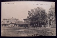 Наконец все прояснилось с местом, где сделана эта фотография. "Голубая" гостиница или трактир, как её еще называли, это сгоревшая в 90-х ШРМ. Ранее в советское время там были детская столовая. На втором этаже почта. Затем это здание было расширено, в нем последовательно размещались рабочий клуб, Дом пионеров, шорно-седельная фабрика и, наконец, школа взрослых. Кирпичное здание - бывший УПК. На этом фото Текст ссылки... она тоже узнаваема.