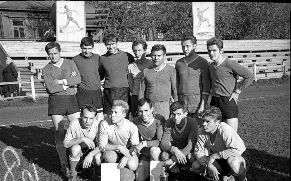 Я узнал в нижнем ряду,второго слева человека—Мигунов Станислав,ныне покойный. Спортсмен,футболист,тренер.Заслуженный и опытный судья многих игр по футболу и хоккею. Человек с огромным оптимизмом и неиссякаемым юмором.