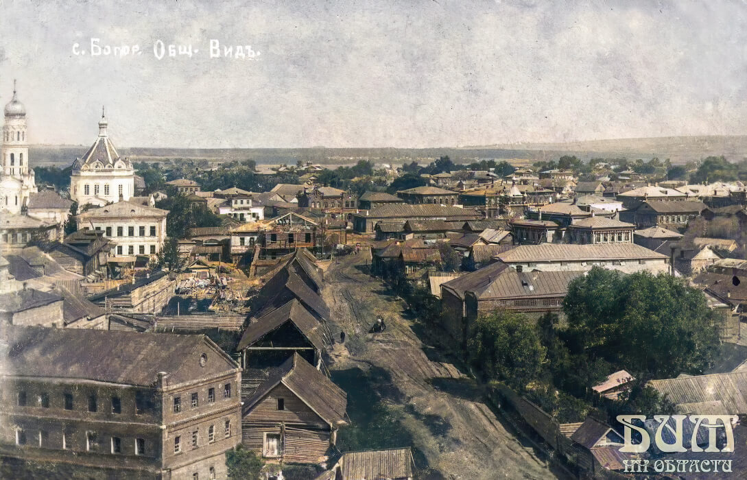 Панорама села Богородское с видом переулка Центральный и церкви Воскресения Господня
